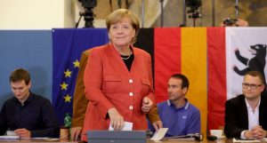 Angela Merkel gibt ihre Stimme bei der Bundestagswahl ab. (Foto: dpa)