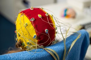 Ein bisschen gruselig findet Frida die Vorstellung schon, dass gerade jemand in ihr Gehirn schaut. Die Zehnjährige sitzt auf einem Stuhl in einem Labor in der Stadt Jena. Auf ihrem Kopf trägt sie eine Kappe, aus der ganz viele Kabel ragen. Die sind mit einem Computer verbunden. Auf dem Bildschirm sind viele Linien zu sehen.