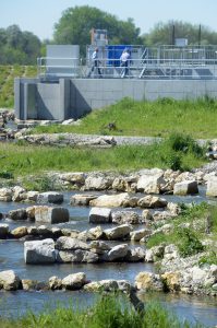 Am Ende müssen die Fische dann noch eine Beton-Anlage überwinden. Sie besteht aus mehreren Becken, die übereinander angelegt sind. So können die Fisch von Becken zu Becken schwimmen. Danach geht es dann wieder in der Donau für die Fische weiter. Bis zum nächsten Kraftwerk.