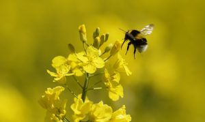 Steinhummel: oranges oder rotes Hinterteil, sonst schwarz.