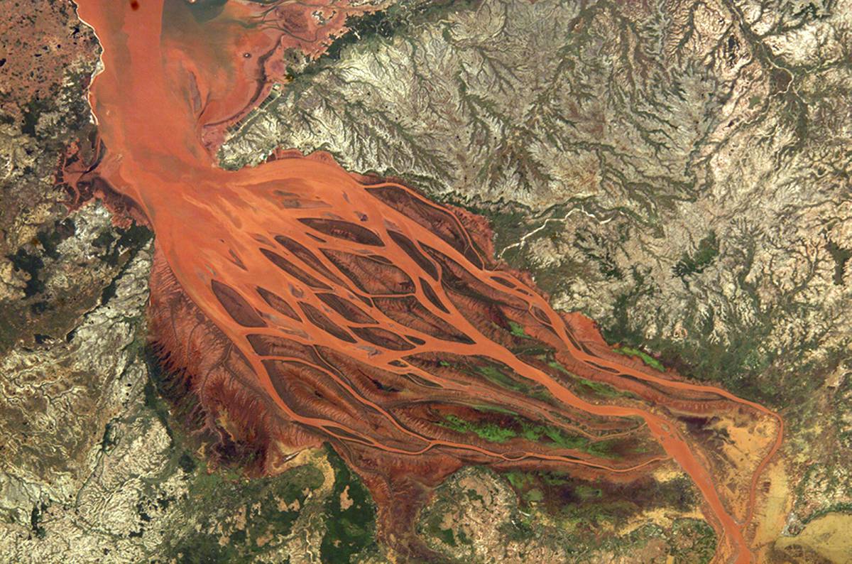 Rotes Wasser ist das Markenzeichen des Flusses Betsiboka auf der afrikanischen Insel Madagaskar. Daher wird er auch „Roter Fluss“ genannt. Er ist 525 Kilometer lang. Auf Madagaskar gab es früher viele Wälder, bis die meisten Bäume nach und nach abgeholzt wurden. „Die erdige, oberste Schicht des Bodens wird dadurch nicht mehr von den Pflanzen gehalten“, sagt Hartmut Arndt von der Kölner Universität. „Wenn es nun regnet, wird die rostbraune Erde in den Fluss geschwemmt.“ In der Regenzeit passiert das besonders häufig, sodass sich der Fluss während dieser Monate blutrot färbt.