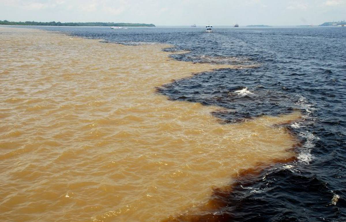 Schwarz trifft Weiß in Brasilien: Encontro_das_Aguas nennt sich dieses Naturschauspiel. (Foto: Wikimedia Commons)