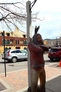 Eine Holzfigur erinnert an die Zeit, als Colorado noch als Wilder Westen zählte. Foto: Antonia Kelloms/dpa