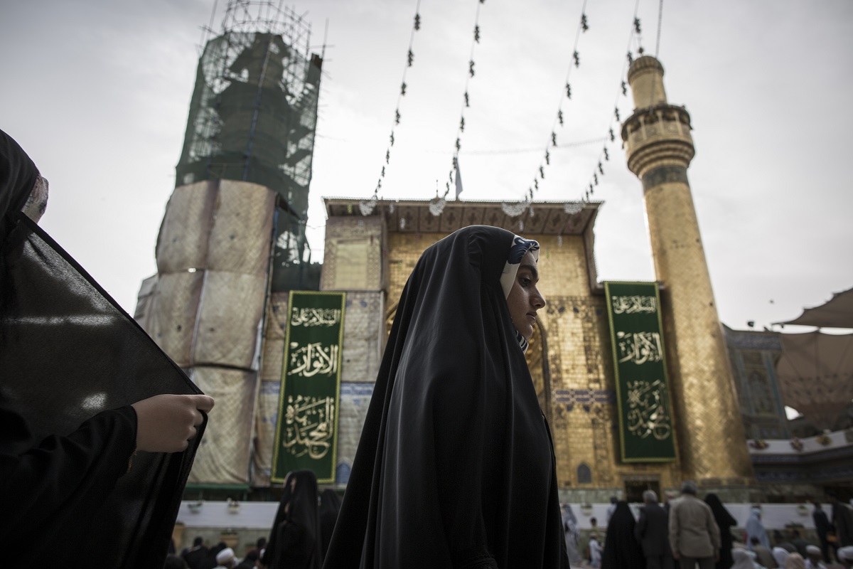 Irak, Nadschaf: Ein schiitisches Mädchen betritt die Imam-Ali-Moschee. Die Moschee ist eines der wichtigsten Heiligtümer der Schiiten. Schiiten glauben, dass dort das Grab des Ali (Ali ibn Abi Tilib), Vetter und Schwiegersohn des islamischen Propheten Mohammed, liegt.