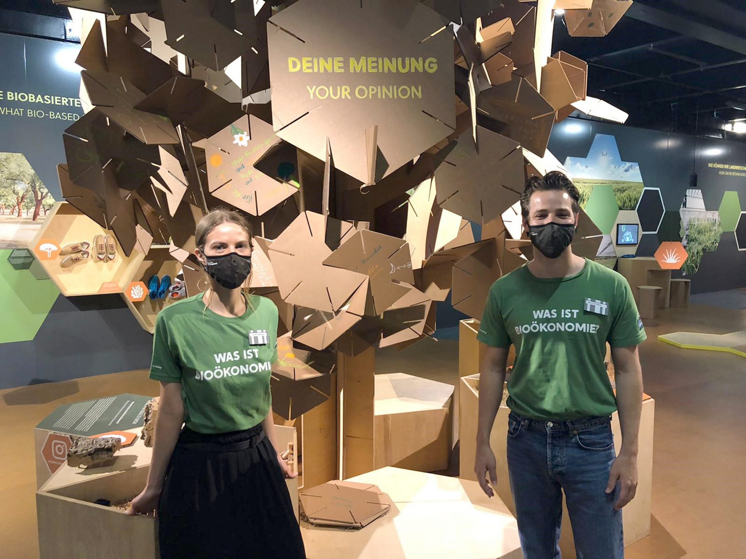 „Wir wollen auch, dass die Besucher nachdenken und Ideen zur Bio-Ökonomie einbringen“, sagt Berthold Böser. Er arbeitet auch auf dem Schiff. Dafür steht in der Mitte des Schiffes der Ideen-Baum, an den die Besucher diese Ideen schreiben können.