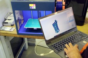 Mit Hilfe seines Kunststoffs kann Leonardo Lauer viele Dinge im 3D-Drucker entstehen lassen. Gemeinsam mit seinem Kollegen hat er zum Beispiel eine Schiene für einen kleinen Hund gedruckt. Das Tier hatte sich das Bein gebrochen und brauchte einen Gips. Doch der war dem Hund lästig. Also druckten die beiden im 3D-Drucker eine passgenaue Schiene. „Im Vergleich zum Gips ist sie viel leichter, kleiner und angenehmer für den Hund zu tragen“, sagt Leonardo Lauer.