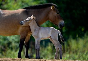 Das Gegenteil von Nesthockern sind die Nestflüchter. Dazu gehören etwa alle Huftiere, zum Beispiel Pferde, Giraffen oder Nashörner. Die Babys sind weit entwickelt, wenn sie auf die Welt kommen und können nach wenigen Minuten laufen. Sie sehen und hören gut. Und die Beine sind stark genug, um mit den Eltern mitzulaufen. Diese bringen ihnen bei, was sie fressen können. Kurze Zeit später versorgen sich die Jungen selbst. Nestflüchter sind meist Tiere, die vor Feinden fliehen müssen. Und deswegen muss der Nachwuchs möglichst rasch mit den Erwachsenen mithalten.