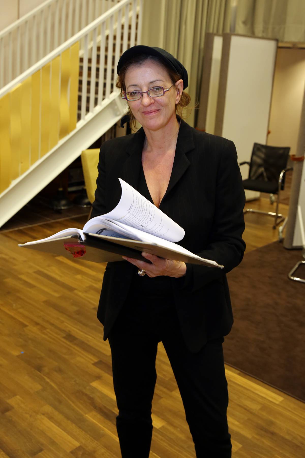 Das Studio ist ein Raum mit vielen Funktionen. Dort werden Szenen aufgenommen, die im Haus spielen. Mit verschiebbaren Wänden kann die Größe des Raums verändert werden. Das besondere an diesen Wänden ist, dass eine Seite aus hartem Material besteht und die andere Seite aus weichem Material. Mit der harten Seite werden Räume wie eine Küche oder ein Badezimmer gebaut. Mit der weichen Seite werden zum Beispiel Szenen im Kinderzimmer vorbereitet. Je nachdem, ob die Wand hart oder weich ist, hören sich die Stimmen nämlich anders an. Eben als würden die Personen im Badezimmer sprechen oder im Kinderzimmer. Im Studio gibt es außerdem eine große Treppe. Die einzelnen Stufen bestehen zur einer Hälfte aus Stein und zur anderen Hälfte aus Holz. Soll man zum Beispiel hören, dass jemand im Treppenhaus läuft, benutzt der Schauspieler die Steinstufen. Für Treppen im Haus eher die Holzstufen. Die knarzen dann auch mal. Auch der Fußboden besteht aus verschiedenen Materialien. Läuft der Schauspieler auf Parkettboden, hört es sich so an, als sei er im Flur. Geht er hingegen auf dem Teppichboden, denkt der Zuhörer, dass sich der Schauspieler im Wohnzimmer aufhält.