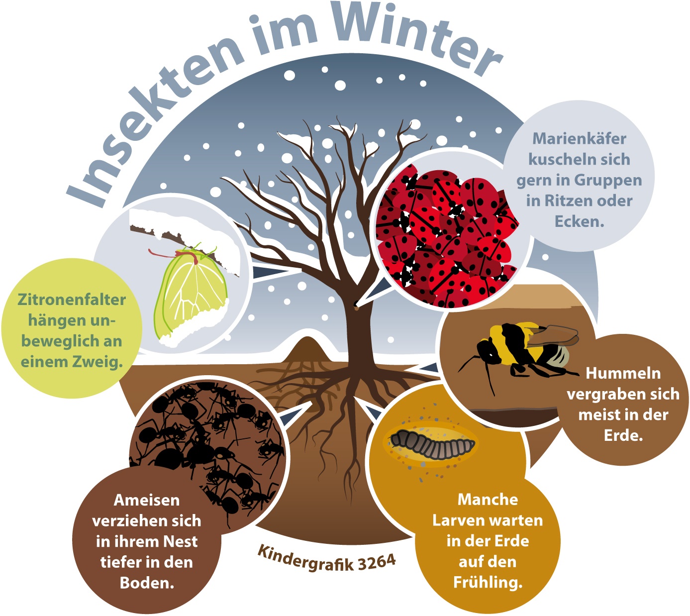 Sie summen, brummen und krabbeln herum – von den ersten Sonnenstrahlen im Frühling bis in die späten Sommertage. Die vielen Käfer, Bienen, Ameisen und Falter sieht man überall, solange es warm ist. Wenn es kälter wird, verschwinden die meisten von ihnen plötzlich. Wohin nur?