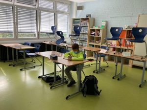Der Unterricht unter Corona-Bedingungen hat bisher ziemlich gut funktioniert: Bei dem warmen Wetter hatten wir immer die Fenster geöffnet. Mal schauen, wie das funktioniert, wenn’s kälter wird. In Englisch sind wir mit unserer Lehrerin für den Unterricht sogar nach draußen gegangen. Das hat wirklich Spaß gemacht und ich finde, das sollten wir weitermachen, wenn das Virus hoffentlich irgendwann mal weg ist. Auch Sport haben wir draußen gemacht und sind dabei durch den Wald nahe der Schule gelaufen.